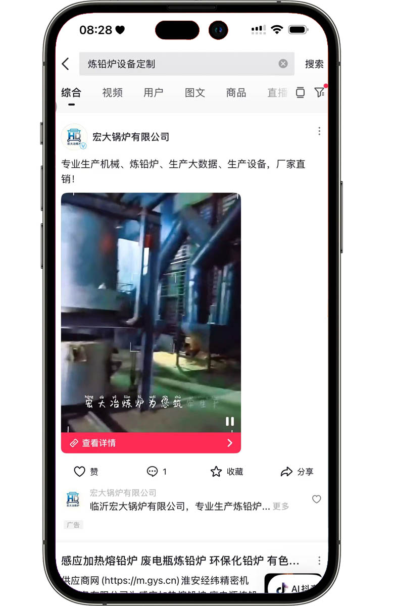 借助抖音平台的流量优势和精准推送能力,广告能触达有炼铅炉设备定制需求的目标用户群体。视频中的生产场景和 “厂家直销” 等信息,有助于增强用户对品牌的信任,“查看详情” 按钮则为潜在客户进一步了解产品、开展定制合作提供了便捷入口,助力企业拓展业务、获取定制订单。
